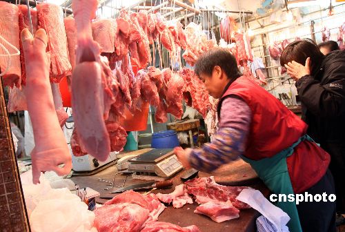 一月二十九日,香港市民在街市選購新鮮豬肉。臨近春節(jié),各類供港食品受內(nèi)地大風(fēng)雪影響價(jià)格上漲,豬肉零售價(jià)再次飆升至每斤四十至四十四元。香港食物及衛(wèi)生局局長周一岳表示,中央已采取緊急調(diào)配措施,務(wù)求把內(nèi)地大風(fēng)雪對供港食品的影響減至最低。中新社發(fā) 洪少葵 攝
