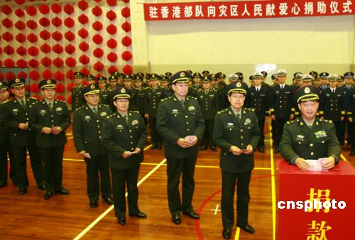 圖:解放軍駐香港部隊(duì)為內(nèi)地災(zāi)區(qū)捐款捐物