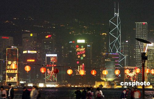 二月十日,游客在香港星光大道觀賞對岸風景。春節(jié)期間,維港兩岸紅燈高掛,增添不少喜慶的過年氣氛。中新社發(fā) 武仲林 攝
