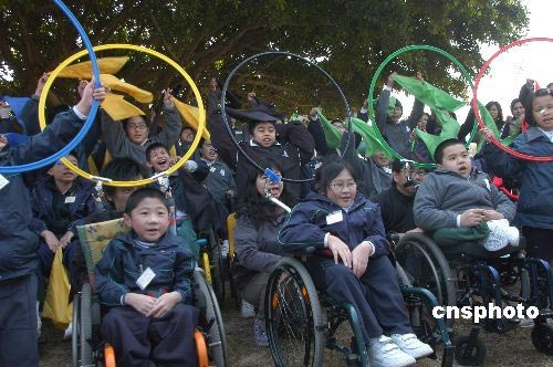 二月二十日是北京零八傷殘奧運(yùn)會倒數(shù)二百天,香港不少特殊學(xué)校學(xué)生參加在彭福公園舉行的“北京二零零八年殘奧會二百天倒數(shù)“儀式。中新社發(fā) 譚達(dá)明 攝