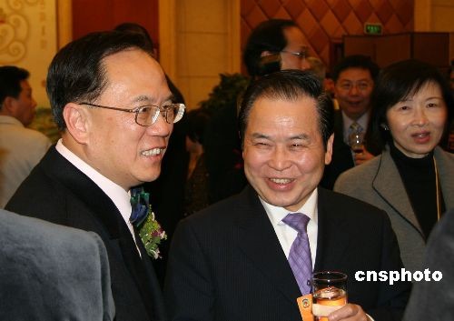 三月四日晚,香港特區(qū)行政長(zhǎng)官曾蔭權(quán)在北京飯店舉行酒會(huì),宴請(qǐng)參加兩會(huì)的香港全國(guó)人大代表和全國(guó)政協(xié)委員。十屆全國(guó)政協(xié)副主席董建華、國(guó)務(wù)院港澳辦副主任陳佐洱、香港中聯(lián)辦主任高祀仁出席酒會(huì)。中新社發(fā) 齊彬 攝