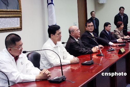 3月13日,中國國民黨主席吳伯雄及中央政策會(huì)執(zhí)行長(“立院”黨團(tuán)大黨鞭)林益世,與前一晚到謝蘇總部所在大樓勘察卻爆發(fā)沖突事件的費(fèi)鴻泰、陳杰、羅淑蕾、羅明才四位黨籍“立委”,在臺(tái)北的中央黨部舉行記者會(huì),說明事件經(jīng)過,并數(shù)度向社會(huì)道歉,力圖避免馬蕭選情受影響。吳伯雄說,四名“立委”是“在不適當(dāng)?shù)臅r(shí)候,到不適當(dāng)?shù)牡胤饺ァ,造成沖突引起社會(huì)不安。他做為國民黨主席感到難過、遺憾與歉疚。中新社發(fā) 黃少華 攝