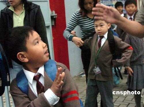 三月三十一日,早前曾有學童病逝的屯門順德聯(lián)誼總會何日東小學的學童回校上課。此前,香港全部小學、幼兒幼兒園和特殊學校停課兩周,以應對流感。中新社發(fā) 譚達明 攝