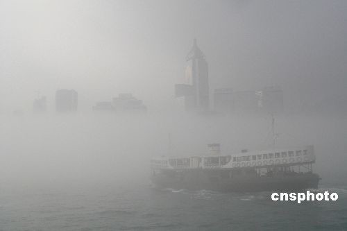 四月六日,香港清晨部分海域能見度低于兩海里,蒲臺(tái)島海域今早約六時(shí)發(fā)生兩艘貨船相撞意外,其中一艘貨船船尾被撞穿入水,事件中無人受傷。國泰航空早上一班由臺(tái)北來港的航機(jī)轉(zhuǎn)飛廣州,傍晚才起飛來港。另有一些離島至港島的渡船停開。圖為上午維港掩映在飄渺的白霧中。 中新社發(fā) 陳京松 攝