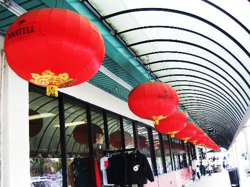 當(dāng)?shù)貢r間4月6日,洛杉磯華人區(qū)的各家商店掛起了大紅燈籠,迎接4月9日北京奧運圣火傳遞到舊金山。金立冬 攝