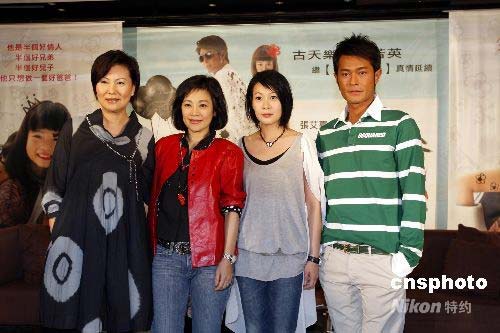 4月23日,張艾嘉(左二)帶著奶茶劉若英(右二)、古天樂,以及片中客串的港星陶敏明在臺(tái)北為愛情結(jié)晶喜劇《一個(gè)好爸爸》造勢(shì)。本片由成龍親自監(jiān)制,是張艾嘉繼《20.30.40》后籌備三年的執(zhí)導(dǎo)力作。她在此片突破常規(guī)染指黑幫的花花世界,用豐富和幽默真摯情感打動(dòng)觀眾,成為導(dǎo)演生涯中最有創(chuàng)作力一次。男女主角古天樂、劉若英飾演一對(duì)經(jīng)歷廿年愛情試煉的夫妻,激情有默契,雋永而清新。《一個(gè)好爸爸》將于4月25日在臺(tái)灣公映。中新社發(fā) 杜洋 攝