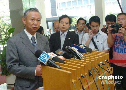 五月十三日,香港保安局局長李少光就四川發(fā)生大地震,特別在政府合署西座大堂會見傳媒。他表示,一隊主要由消防員組成的二十人支援隊伍,會盡快趕赴災(zāi)區(qū)協(xié)助救援,隊伍包括十五名消防員,三名救護員,還有其他醫(yī)護人員等,他們會帶備生命探測器及自備帳篷,需要時會動員更多人到當(dāng)?shù)鼐葹?zāi)。中新社發(fā) 鄧慶樂 攝
