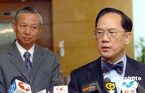 五月十三日,香港特別行政區(qū)行政長(zhǎng)官曾蔭權(quán)在香港會(huì)見傳媒,慰問(wèn)四川大地震災(zāi)民,并表示特區(qū)政府會(huì)盡力支援及配合,將兵分三路協(xié)助中央救災(zāi)。中新社發(fā) 鄧慶樂(lè) 攝