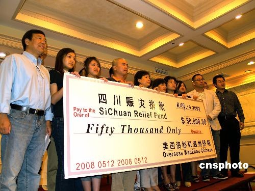 洛杉磯溫州僑領向汶川地震災區(qū)募款5萬6千美金