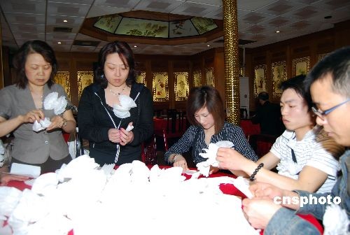 在中國“全國哀悼日”期間,法國華僑華人婦女聯合會的一些會員自發(fā)組織起來,折疊大量紙花,供旅法僑胞、留學生等到中國駐法使館悼念汶川地震遇難同胞。