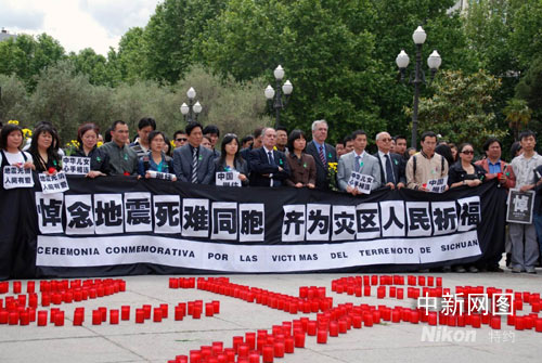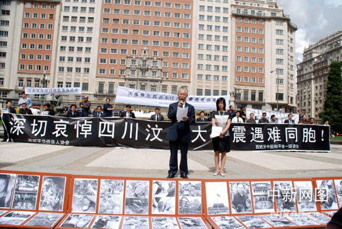 旅居西班牙的華僑華人二十一日在馬德里舉行燭光會,悼念四川汶川地震遇難的同胞。吳衛(wèi)中 攝