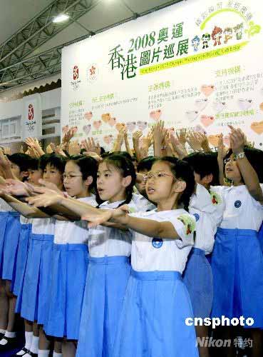 五月二十五日,“萬眾一心 眾志成城 為四川災區(qū)人民獻愛心義演”在香港時代廣場舉行,香港數(shù)所學校和幼稚園的小朋友演唱“我愛中華”、“承諾”等歌曲為四川地震災區(qū)人民加油。圖為學生演唱由劉德華專為這次地震作詞、黃家駒作曲的賑災歌“承諾”。中新社發(fā) 王麗南 攝