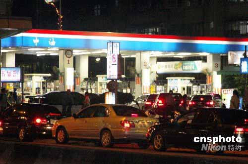 臺灣島內二十八日凌晨全面調升油價,當晚上各加油站排滿汽車長龍。圖為中油公司附近一個加油站場景。中新社發(fā) 陳立宇 攝