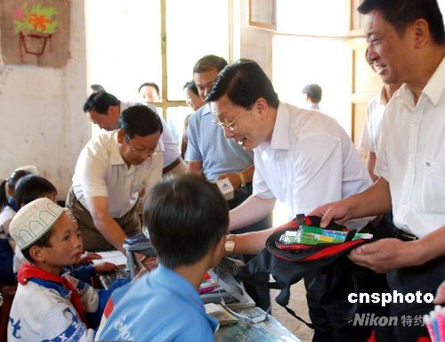 6月11日至12日,國(guó)務(wù)院僑辦副主任馬儒沛一行赴國(guó)僑辦定點(diǎn)幫扶點(diǎn)積石山縣,視察了定點(diǎn)幫扶項(xiàng)目的進(jìn)展情況,并看望了積石山縣的部分貧困農(nóng)戶(hù)和小學(xué)生。13日,馬儒沛向甘肅省政府轉(zhuǎn)交海外僑胞的捐款1000萬(wàn)元人民幣。中新社發(fā) 牛建業(yè) 攝