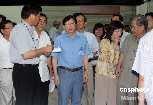 大陸觀光客七月四號即將來臺,六月二十一日,臺灣“行政院長”劉兆玄到臺北松山機場及日月潭視察接待準備工作。他強調(diào),除了硬件要做到最好之外,更要注意人員的素質(zhì),希望大陸觀光客一踏進機場,立刻感受到最好的氣氛。圖為劉兆玄在松山機場聽取稽查人員有關(guān)工作匯報。 中新社發(fā) 耿軍 攝