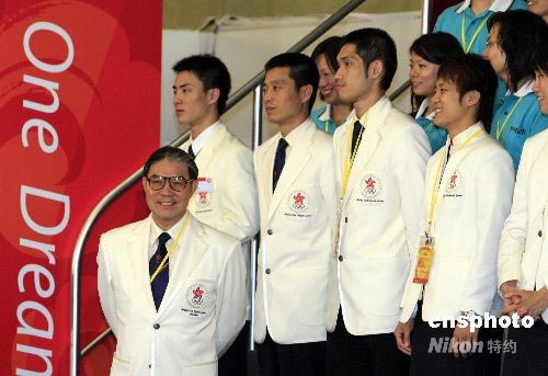 七月六日下午,中國(guó)國(guó)家副主席習(xí)近平在香港沙田奧運(yùn)馬術(shù)場(chǎng)地接見奧運(yùn)香港運(yùn)動(dòng)員代表和義工,并鼓勵(lì)他們?yōu)閵W運(yùn)出力,為祖國(guó)爭(zhēng)光。習(xí)近平副主席的加油打氣后,香港奧委會(huì)會(huì)長(zhǎng)霍震霆(左一)及運(yùn)動(dòng)員和義工們個(gè)個(gè)臉上喜氣洋洋,精神倍增。中新社發(fā) 王麗南 攝