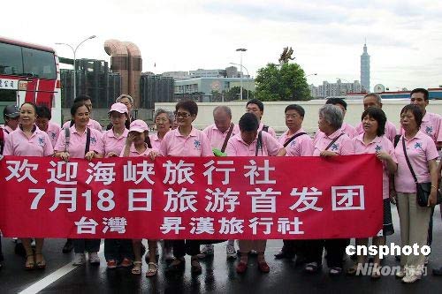 大陸居民赴臺(tái)旅游十八日正式實(shí)施,首批游客從臺(tái)北松山機(jī)場(chǎng)入境抵臺(tái)。這也標(biāo)志著各界期盼已久的大陸居民赴臺(tái)游開始步入常態(tài)化。圖為從松山機(jī)場(chǎng)出站的大陸游客在機(jī)場(chǎng)合影。中新社發(fā) 徐長安 攝