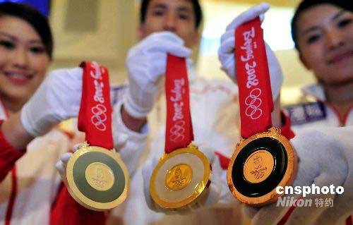 圖:北京奧運“金鑲玉”獎牌在香港展示