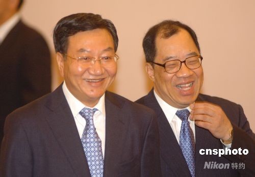 《內地與澳門關于建立更緊密經貿關系的安排》(CEPA)“補充協(xié)議五”三十日在澳門正式簽署,簽字代表商務部副部長姜增偉(左)與澳門特區(qū)經濟財政司司長譚伯源笑逐顏開。中新社發(fā) 畢永光 攝