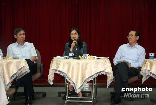 9月2日日下午,臺灣“陸委會”主委賴幸媛(中)與媒體茶敘。圖為賴幸媛正在回答記者的提問。中新社發(fā) 陳立宇 攝