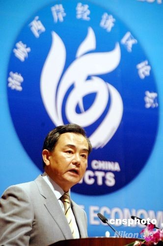 九月七日上午,中共中央臺(tái)辦、國務(wù)院臺(tái)辦主任王毅在廈門開幕的第三屆海峽西岸經(jīng)濟(jì)區(qū)論壇作重要演講時(shí),宣布為便利兩岸同胞交往,大陸方面決定采取五項(xiàng)新的政策措施。 中新社發(fā) 鄭祚聲 攝