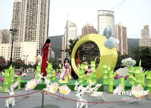 中秋節(jié)即將到來,香港維多利亞公園布置各種中秋彩燈,讓市民提前感受佳節(jié)氣氛。中新社發(fā) 張勤 攝