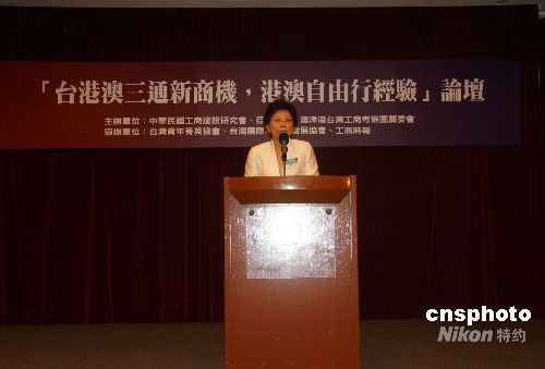 9月19日下午,臺灣;鶗麻L江炳坤、臺灣“觀光局”局長賴瑟珍出席“臺港澳三通新商機(jī),港澳自由行經(jīng)驗(yàn)”論壇。中新社發(fā) 曾福志 攝