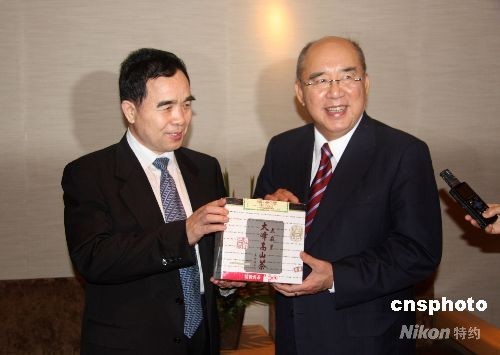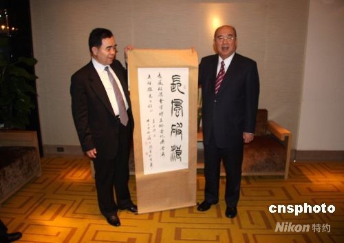 9月21日,中國國民黨主席吳伯雄在臺北會見了率團前來參加紀念海峽兩岸出版交流20周年系列活動的中國出版工作者協(xié)會顧問、海峽兩岸出版交流20周年系列活動組委會名譽主任柳斌杰。中新社發(fā) 陳立宇 攝
