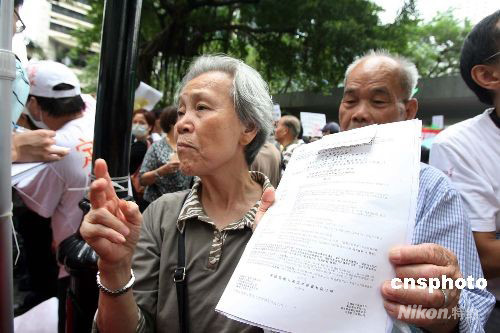 十月八日上午,逾百名受雷曼迷你債券影響的香港市民,趁新一屆立法會(huì)復(fù)會(huì)到場(chǎng)抗議,要求立法會(huì)成立專責(zé)委員會(huì)撤查事件。有苦主認(rèn)為,銀行回購(gòu)方案未能讓他們悉數(shù)取回本金。當(dāng)日,財(cái)政司司長(zhǎng)曾俊華重申,政府提出由分銷銀行回購(gòu)雷曼迷你債券方案是希望投資者盡快取回部分資金,強(qiáng)調(diào)政府不會(huì)“包底”的。中新社發(fā) 洪少葵 攝