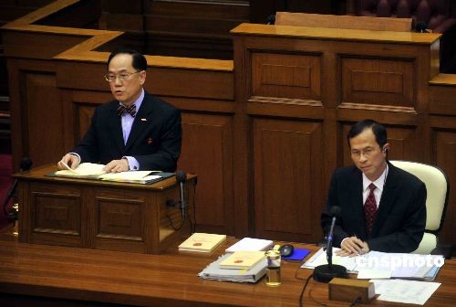 十月十六日,香港行政長官曾蔭權,下午出席立法會答問大會,答覆議員向其提出的質詢。中新社發(fā) 譚達明 攝
