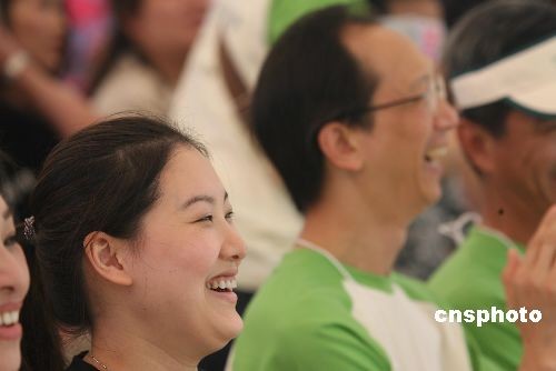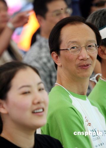 十月二十五日,國際小母牛香港分會(huì)董事局主席梁錦松、小母牛組織愛心大使伏明霞在香港維多利亞公園出席小母!案(jìng)步善行二零零八”慈善比賽,為四川災(zāi)區(qū)重建工作籌款。中新社發(fā) 武仲林 攝