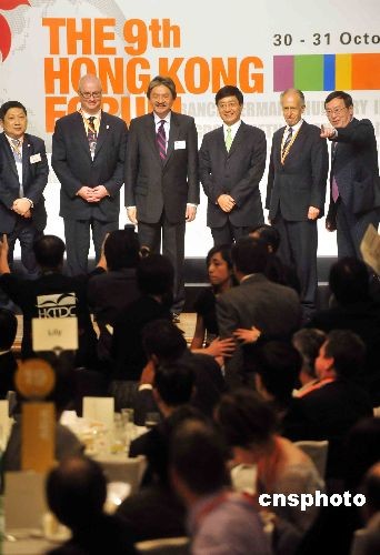 十月三十日,香港財(cái)政司司長(zhǎng)曾俊華(左三)出席第九屆香港論壇的歡迎午宴。香港論壇由貿(mào)發(fā)局主辦,旨在協(xié)助香港公司拓展關(guān)系,促成合作。中新社發(fā) 譚達(dá)明 攝
