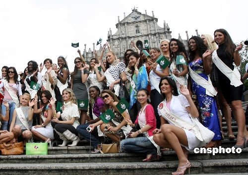 十一月一日,第四十八屆國(guó)際小姐選美大賽的六十三名候選佳麗在澳門參觀大三八牌坊等世遺景點(diǎn),體味中華傳統(tǒng)文化魅力。中新社發(fā) 武仲林 攝
