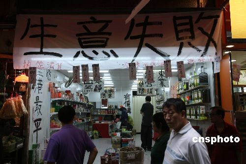 十一月二日,香港灣仔一店鋪打出結(jié)束營業(yè)、低價清盤的橫幅。數(shù)據(jù)表明,在剛剛過去的十月份,香港已有近五十家港企申請清盤,以主營制造業(yè)和零售業(yè)的中小企業(yè)為主,其中也不乏合俊、泰林等有一定規(guī)模和歷史的企業(yè)。業(yè)內(nèi)人士認為,受金融海嘯直接影響而倒閉的公司將陸續(xù)出現(xiàn),今年年底將迎來倒閉高潮。中新社發(fā) 武仲林 攝