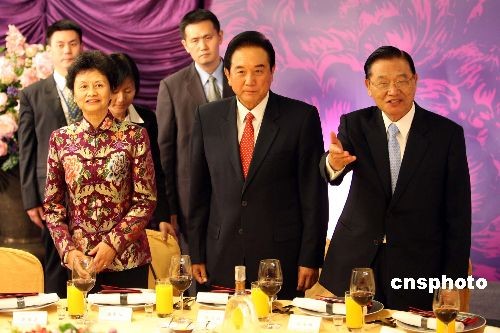 十月一月三日晚,臺(tái)灣;鶗(huì)董事長(zhǎng)江丙坤在101大樓設(shè)宴,為中午抵臺(tái)的海協(xié)會(huì)會(huì)長(zhǎng)陳云林洗塵。中新社發(fā) 洪少葵 攝