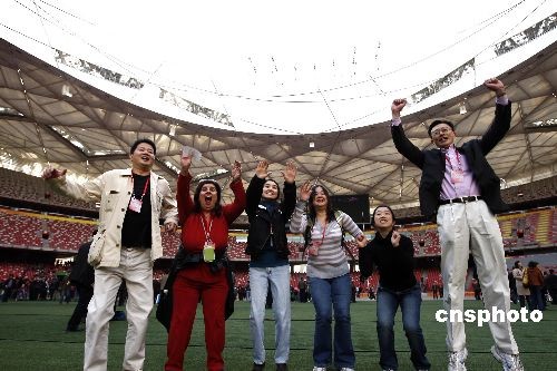 參加“2008年海外華裔青年杰出人士華夏行”活動的代表參觀國家體育場“鳥巢”。
