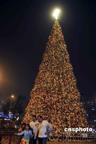 十一月下旬,香港各大商場(chǎng)斥巨資推廣圣誕,以豪裝刺激消費(fèi)意欲。圖為香港奧海城巨型圣誕樹裝飾。中新社發(fā) 譚達(dá)明 攝