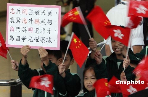 十二月五日,“神舟七號”載人航天飛行代表團(tuán)抵達(dá)香港國際機(jī)場,展開為期四天的訪港行程。四十多人的代表團(tuán)包括團(tuán)長張建啟、航天員翟志剛、劉伯明和景海鵬,以及負(fù)責(zé)這次載人航天工程的各主要系統(tǒng)指揮或設(shè)計(jì)師。中新社發(fā) 武仲林 攝