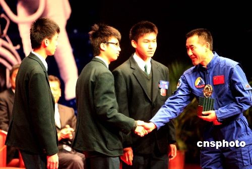 圖為翟志剛香港學(xué)生頒獎(jiǎng)。