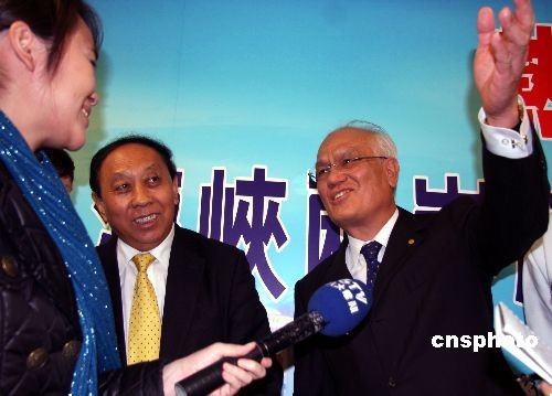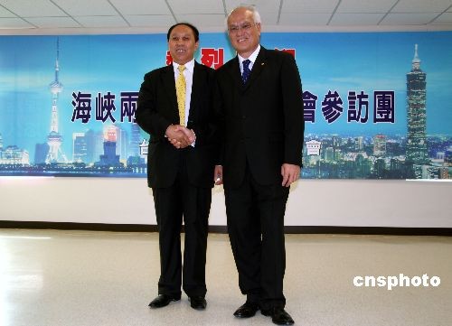 臺灣海峽兩岸航運協(xié)會(“臺航會”)12月8日上午在臺北與來訪的海峽兩岸航運交流協(xié)會(“海航會”)參訪團座談。圖為海峽兩岸航運交流協(xié)會理事長胡漢湘和“臺航會”董事長、長榮海運董事長王龍雄在座談會中。胡漢湘說,兩岸航商爭先恐后要求參加首航,兩岸將同步行動,慶祝海運首航。中新社發(fā) 劉舒凌 攝