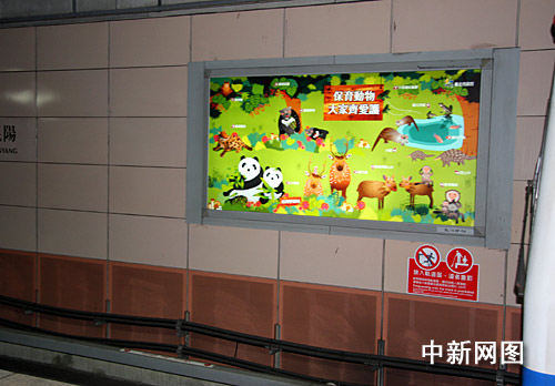 12月25日,大陸贈臺大熊貓團團、圓圓的廣告現(xiàn)身在臺北捷運站。這則由臺北市動物園刊登的廣告寫著“歡迎新同學”。 陳立宇 攝