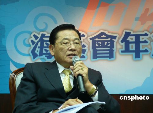 財團法人海峽交流基金會董事長江丙坤一月二十一日在此間;鶗杲K記者會上表示,兩岸關(guān)系在過去的一年中取得了三項突破,兩岸進入務(wù)實往來、互信互諒階段。未來一年;鶗䦟⒗^續(xù)努力構(gòu)建兩岸良性互動局面。中新社發(fā) 路梅 攝