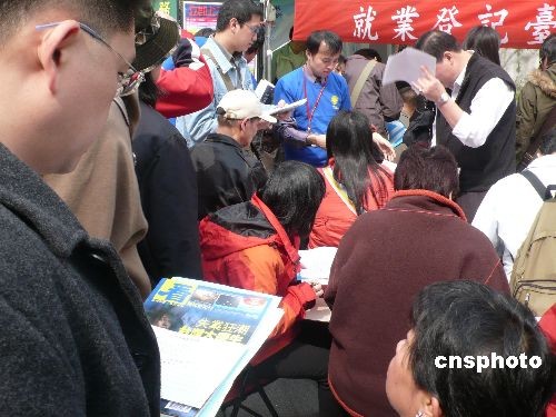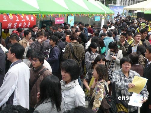 大環(huán)境經(jīng)濟(jì)不景氣,臺(tái)灣去年十二月失業(yè)率超過百分之五,失業(yè)人口近五十無萬!爸饔(jì)處”對(duì)今年經(jīng)濟(jì)成長率的預(yù)測(cè)為負(fù)百分之二點(diǎn)九七。臺(tái)北市政府勞工局在二十一日舉行了一場(chǎng)就業(yè)博覽會(huì),釋出兩千多個(gè)工作職位,并提供職業(yè)訓(xùn)練課程供民眾申請(qǐng)。中新社發(fā) 路梅 攝