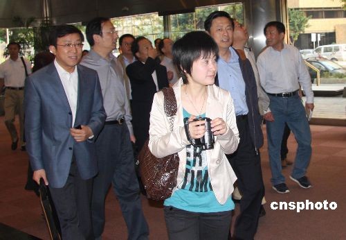 三月二十五日,由十七家大陸中央媒體負(fù)責(zé)人組成的訪問(wèn)團(tuán)拜訪臺(tái)灣《聯(lián)合報(bào)》。圖為訪問(wèn)團(tuán)步入《聯(lián)合報(bào)》報(bào)社大樓。中新社發(fā) 耿軍 攝