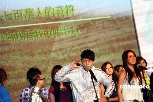 三月二十六日,香港歌手陳偉霆、鐘舒漫與一眾歌手載歌載舞演唱“七百萬人的音符”推介香港音樂匯展。當日,由國際唱片業(yè)協(xié)會[香港會]與香港貿(mào)發(fā)局攜手合辦的“第四屆香港音樂匯展”在會展中心舉行。中新社發(fā) 洪少葵 攝