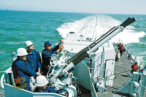 國慶長假剛過,東海艦隊某驅(qū)逐艦支隊把艦艇拉到某陌生海域,開展編隊聯(lián)合海上對抗演練,提高部隊實戰(zhàn)能力。圖為艦艇編隊航渡途中進行防空訓練的情景!  〗夥跑妶筇丶s通訊員 代宗鋒攝