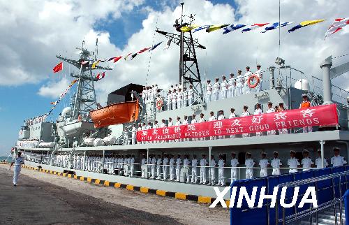11月5日,中國(guó)海軍“鄭和號(hào)”訓(xùn)練艦駛?cè)爰砥艺鞴耸械奈鞴烁郏_(kāi)始為期9天的柬埔寨之旅。“鄭和號(hào)”是根據(jù)中柬兩軍制定的2008年友好交流計(jì)劃抵柬進(jìn)行正式友好訪問(wèn)的,這也是中國(guó)海軍艦船首次訪問(wèn)柬埔寨。新華社記者夏林?jǐn)z