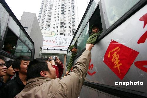 11月19日,進藏新兵在親人們的歡送下離開家鄉(xiāng)。當(dāng)日,重慶市永川區(qū)首批進藏新兵在區(qū)人武部大院集中,完成了相關(guān)交接手續(xù)后,新兵們在親人的祝福聲中,登上大巴車依依不舍地告別親人、告別故鄉(xiāng),踏上了保家衛(wèi)國的征程。中新社發(fā) 陳仕川 攝