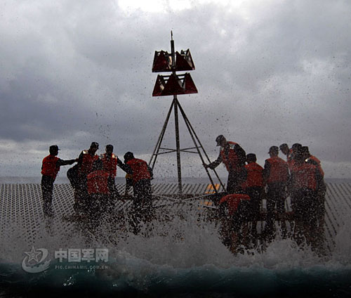 近日,南海艦隊某登陸艦支隊把艦艇拉到陌生海域,并在惡劣氣象條件下開展實彈射擊、航行補給等科目訓練,著力提升部隊核心軍事能力。圖為實彈射擊前官兵頂風破浪投放靶標的情景。 中國軍網(wǎng)發(fā) 李彥林攝