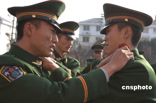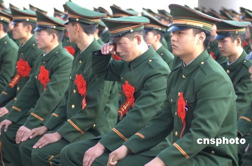 11月24日,武警南京市支隊(duì)舉行退伍士兵歡送儀式,數(shù)百名老兵淚別警營(yíng),光榮退伍。隨著分別時(shí)合唱歌聲的響起,在即將離開(kāi)警營(yíng)的時(shí)刻,即將退伍的老兵和前來(lái)送別的戰(zhàn)士早已淚流滿(mǎn)面。中新社發(fā) 韓華 攝